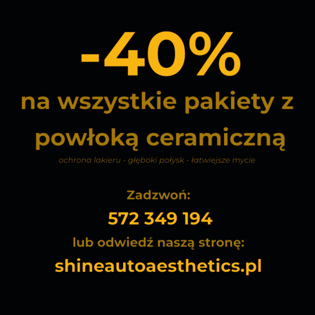 Już jest nas ponad 1000 obserwujących na facebooku! Dziękuję, że śledzicie mój profil i wspieracie rozwój Shine Auto Aesthetics! Z tej okazji przygotowałem super promocję: do końca listopada -40% na wszystkie pakiety z powłoką ceramiczną Ceramika to: ochrona lakieru głęboki połysk łatwiejsze mycie Zachęcam do obserwowania profilu, bo na dniach zorganizuję konkurs, w którym będzie można zgarnąć voucher o wartości 1000zł! Zadzwoń lub wypełnij formularz! Promocja trwa tylko do końca listopada!